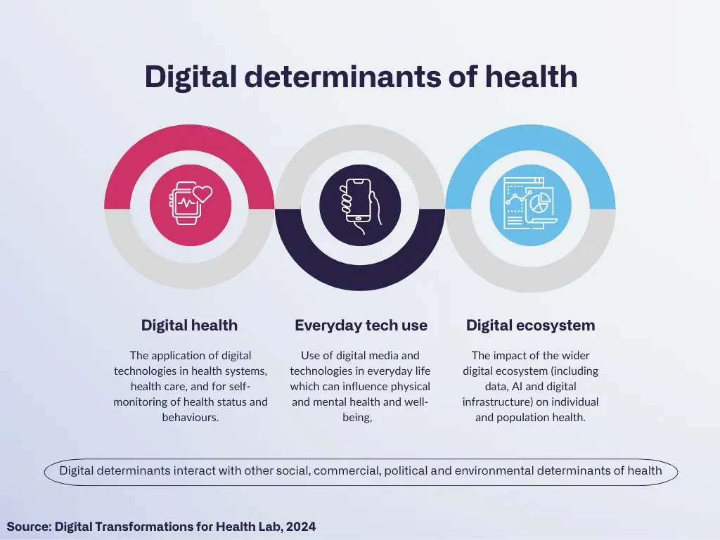 In this Lancet Public Health Viewpoint, Louise Holly, DTH-Lab’s Research and Policy Coordinator, Ilona Kickbusch, DTH-Lab’s Director, and Sandro Demaio, CEO of VicHealth, argue that digital technologies should be recognized as determinants of health and call for public health strategies to protect young people from digital harms.